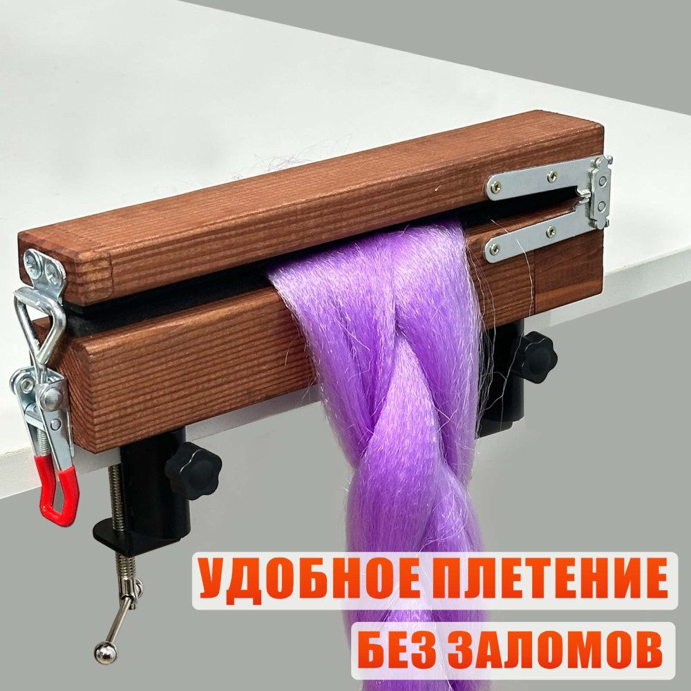 станок брейдера, WOOD-HAIR-4, зажим с замочком для канекалона, деревянный станок для кос, станок для афроплетения, аксессуары для брейдинга, инструмент для афрокос, держатель канекалона, приспособление для плетения дред, оборудование для плетения, станок для канекалона