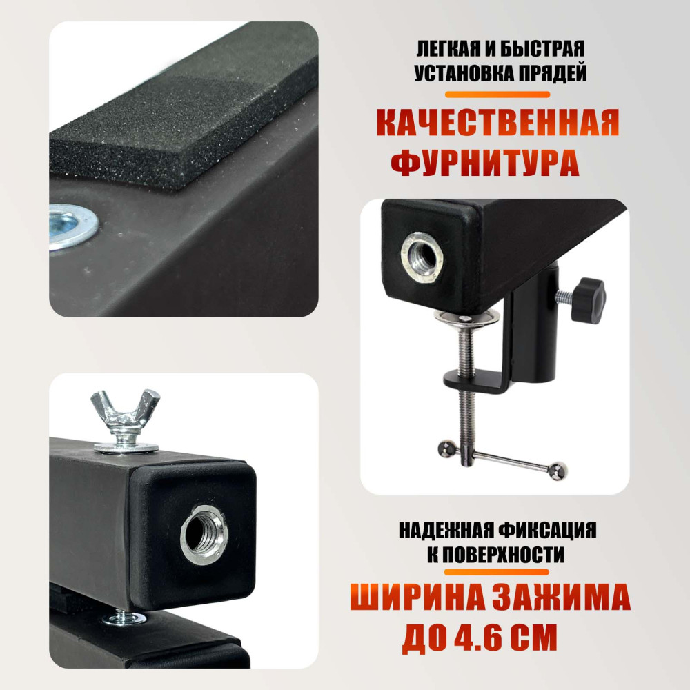 Станок — функциональный инструмент для брейдеров, позволяющий эффективно плести афрокосы, дреды, зизи-косички, сенегальские косы и брейды с канекалоном или натуральными волосами. Станок устанавливается на стол с помощью двух струбцин, обеспечивая стабильность и комфорт при работе. Регулируемый зажим позволяет зафиксировать пряди разной толщины, снижая нагрузку на руки мастера и предотвращая повреждения волос. Компактная конструкция облегчает хранение и транспортировку. Станок подходит как для салонов красоты, так и для домашних студий.