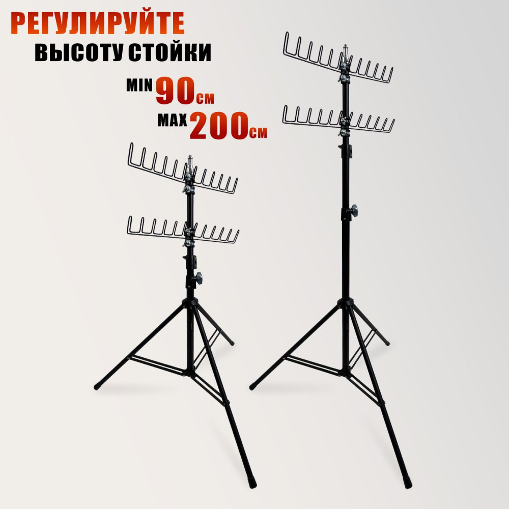 Стойка напольная усиленная LS-2HHolder для плетения кос и канекалона, 2 яруса держателей, телескопический штатив, металл, регулируемая высота 90–200 см