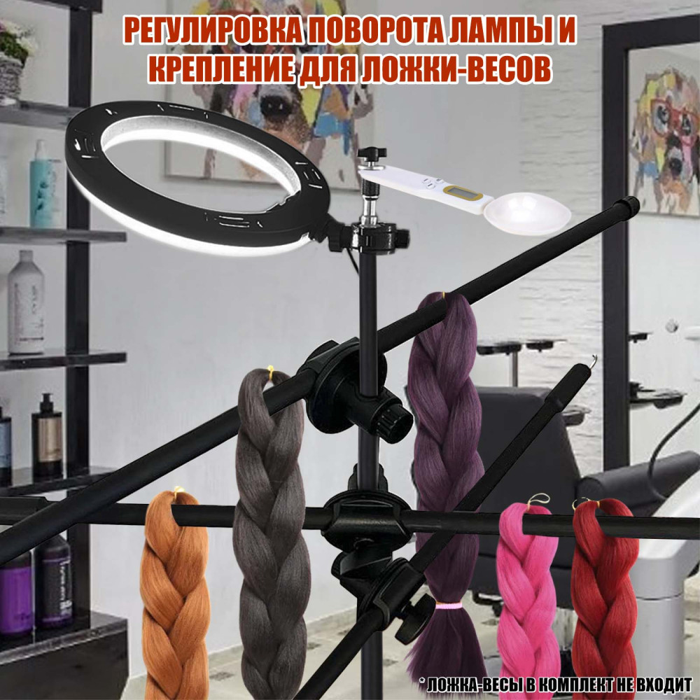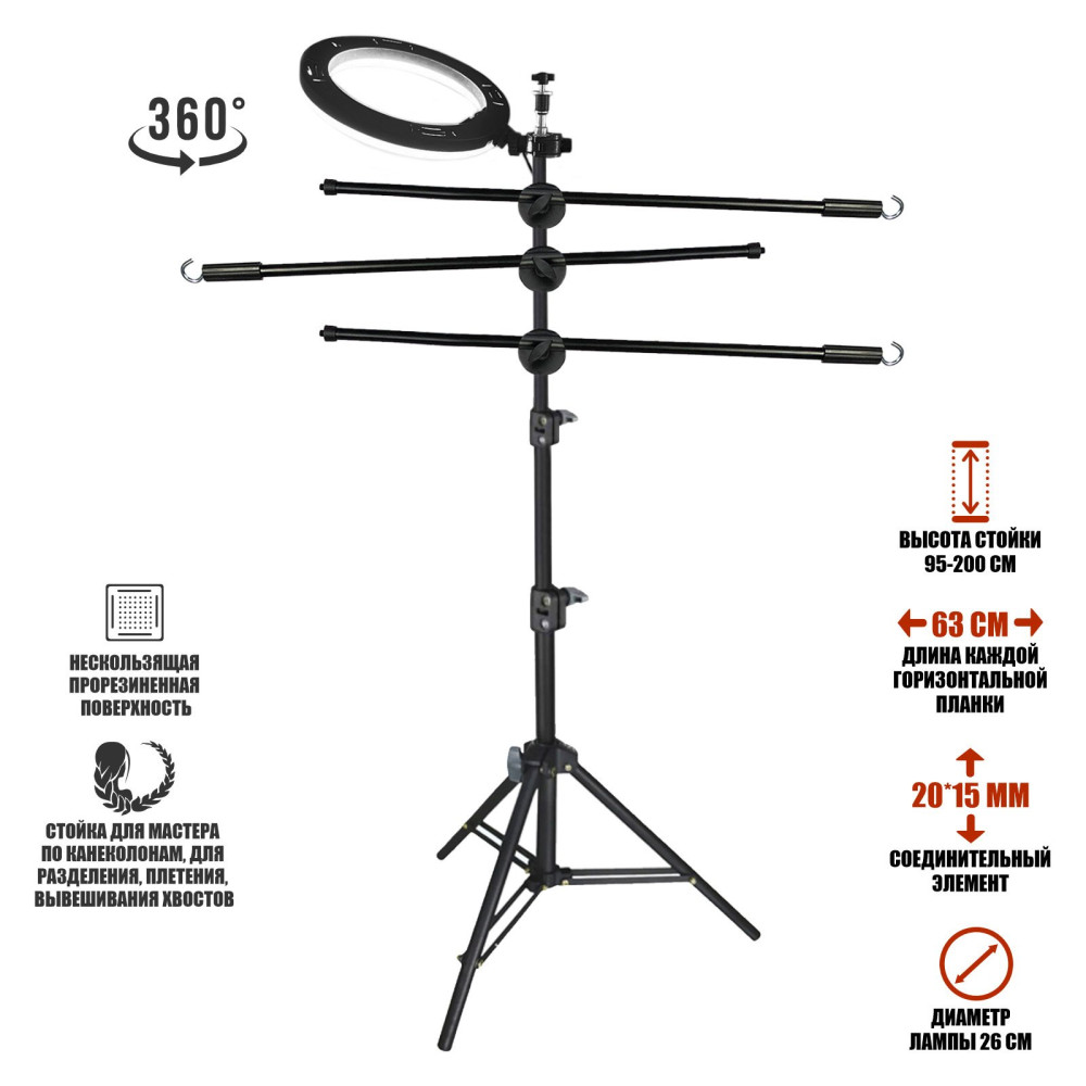 Стойка LS-3ES63-B-26 — это универсальная напольная вешалка для канекалона, дред и афрокос, оснащённая тремя держателями и кольцевой LED-лампой диаметром 26 см. Модель совмещает функциональность рабочего инструмента и студийного освещения, делая процесс плетения, окрашивания и создания причёсок комфортным и точным. Регулируемая высота и поворотная конструкция обеспечивают удобство в работе мастера. Все комплектующие и запасные части к стойке можно приобрести на Krasograd.ru.