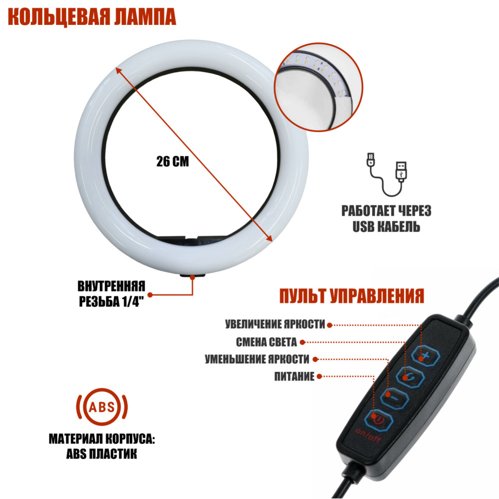 - Кольцевая LED-лампа 26 см — 1 шт.