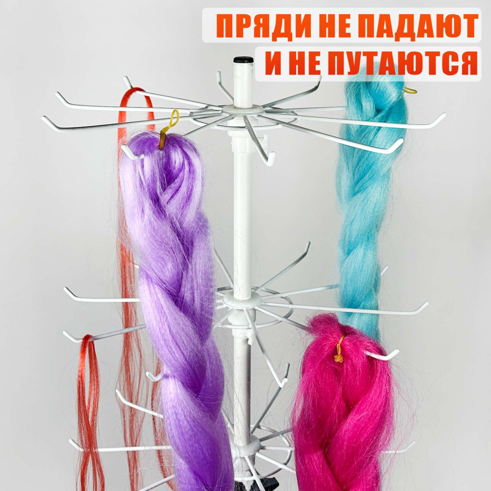 Вращающаяся трёхъярусная стойка WST-3HAIR с крючками для плетения кос, белая металлическая