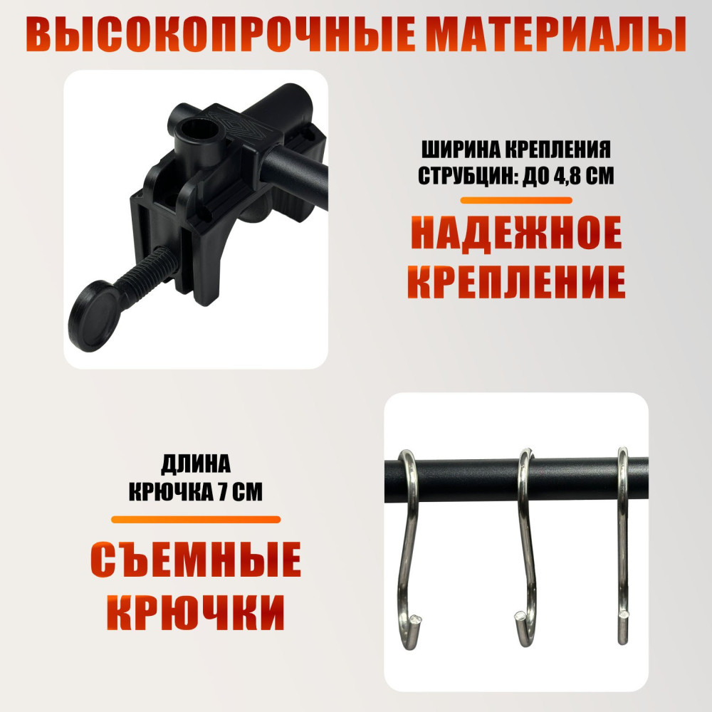 Вешалка PSTR48-B-64 с 10 крючками — практичный и удобный аксессуар для организации рабочего пространства парикмахеров, стилистов и домашних мастеров. Надёжное крепление на струбцинах позволяет устанавливать вешалку на столы, полки или стены, обеспечивая устойчивость и комфорт в работе. Десять крючков дают возможность развесить пряди канекалона или другие аксессуары, сохраняя порядок и экономя время мастера.
