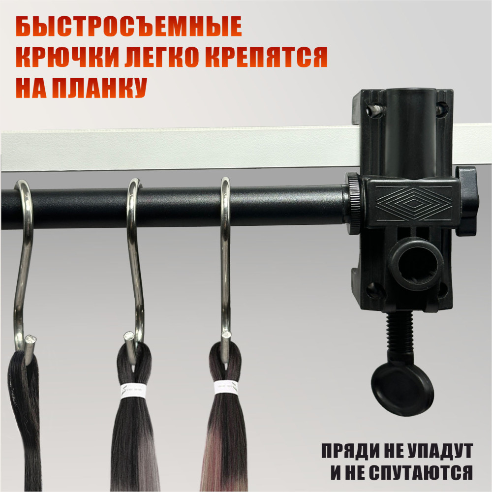 Вешалка для волос, для канекалона, крепление PSTR48-B-64 на струбцинах с 10 крючками