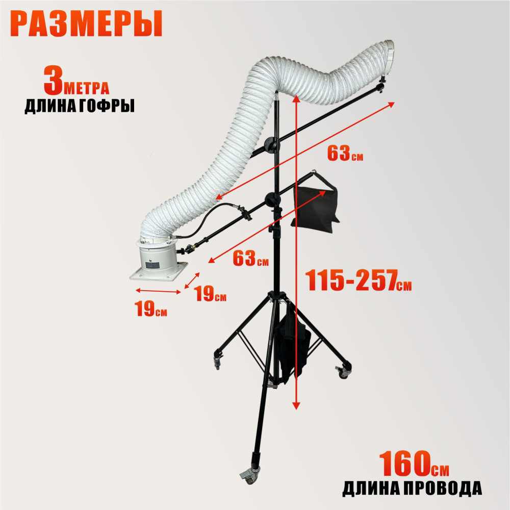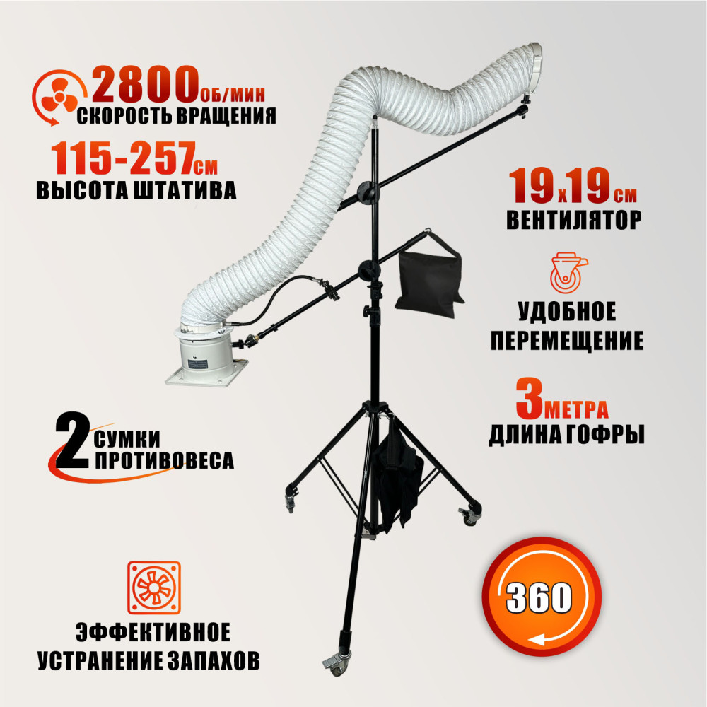 Вытяжка на штативе STANDK-1LS-63K с гофрой 3 м — профессиональный аксессуар для мастеров по работе с волосами. Эффективно устраняет запахи, токсичные пары и пыль при работе с кератином и ботоксом. Регулируемая высота штатива, шарнирные журавли и возможность подключения к потолочной или настенной вентиляции обеспечивают комфорт и безопасность работы. Колесики и противовесы позволяют удобно перемещать и стабилизировать конструкцию.