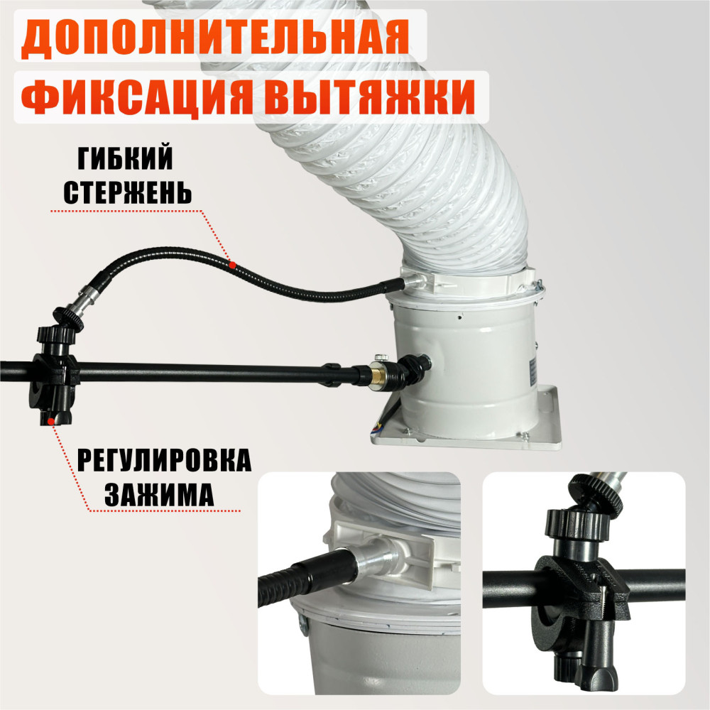 - Регулировка угла наклона вентилятора и воздуховода