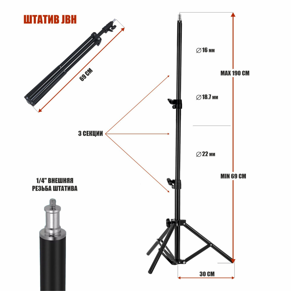 • Осветитель RGB PM-36D с регулировкой цвета и яркости профессиональный свет RGB на напольной стойке JBH с держателем телефона
