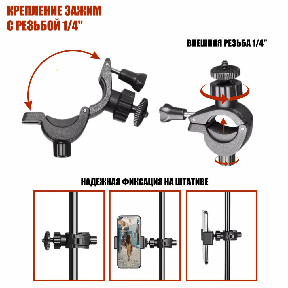 - Крепление-зажим на штатив для телефона с резьбой 1/4" — 1 шт