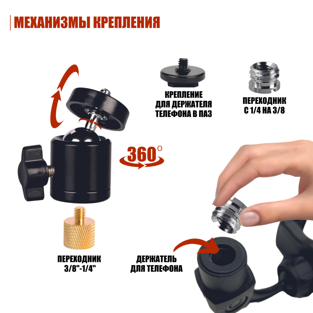 - Универсальный держатель для телефона с резьбовым креплением 3/8