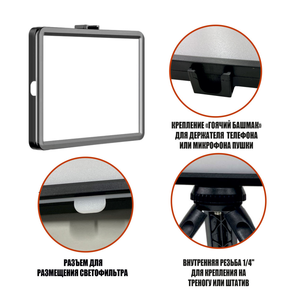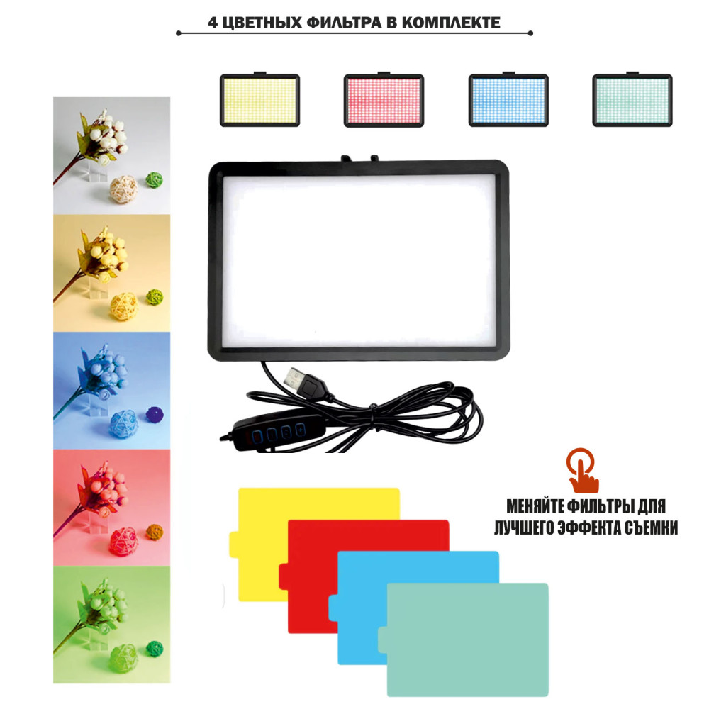 - Компактная светодиодная панель с 4 цветными фильтрами