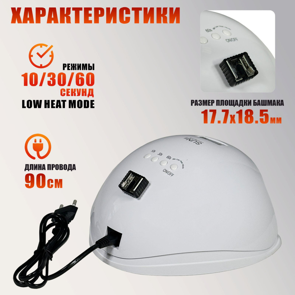 Сменная УФ лампа 48 Вт с креплением в паз обеспечивает профессиональную сушку ногтей при маникюре и педикюре. Лампа надежно фиксируется на штативах и держателях, освобождая руки мастера и обеспечивая безопасное рабочее пространство. Режим низкотемпературного отверждения постепенно увеличивает интенсивность УФ-излучения, уменьшая дискомфорт при работе с гель-лаком. Съемное основание позволяет использовать лампу на различных подставках и столах, делая работу удобной как в салонах, так и дома.