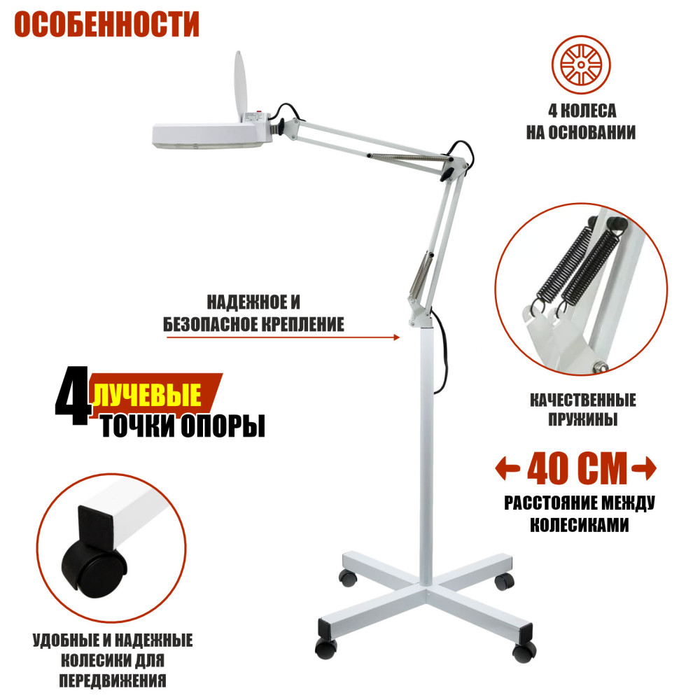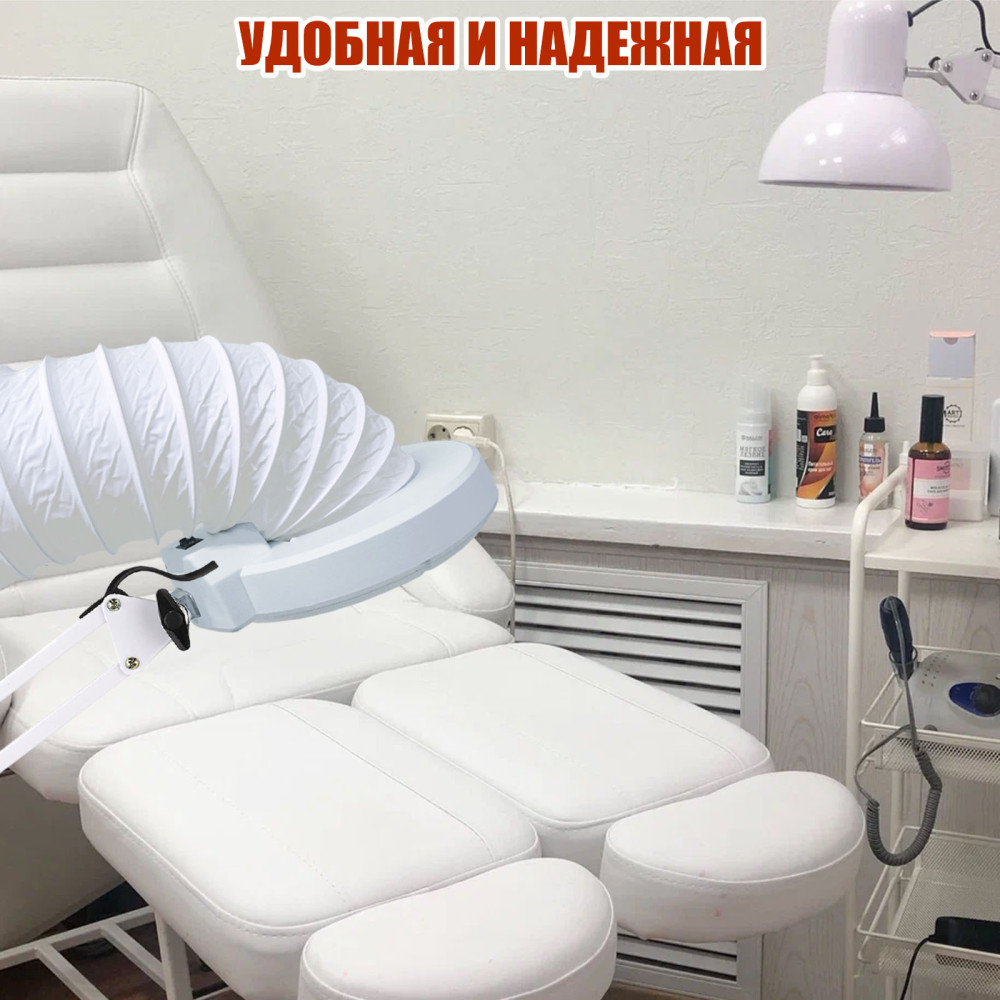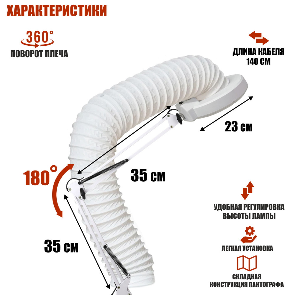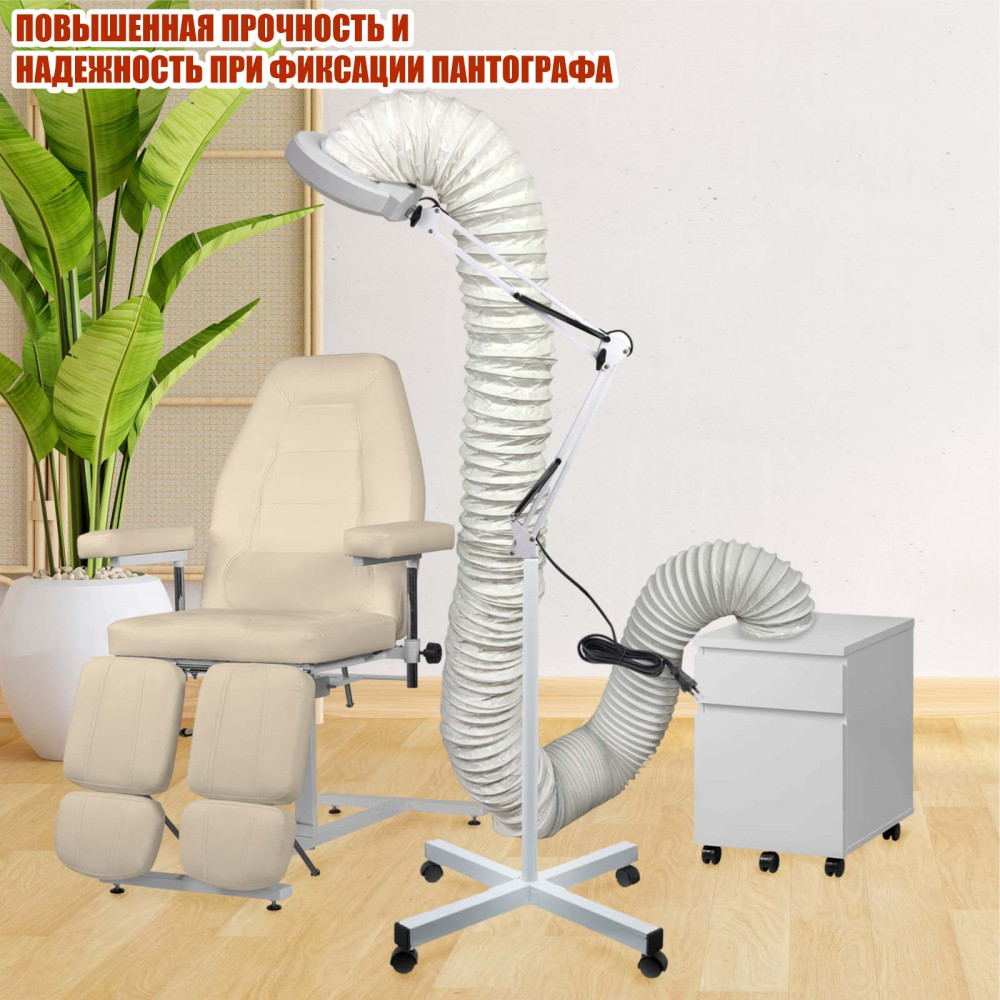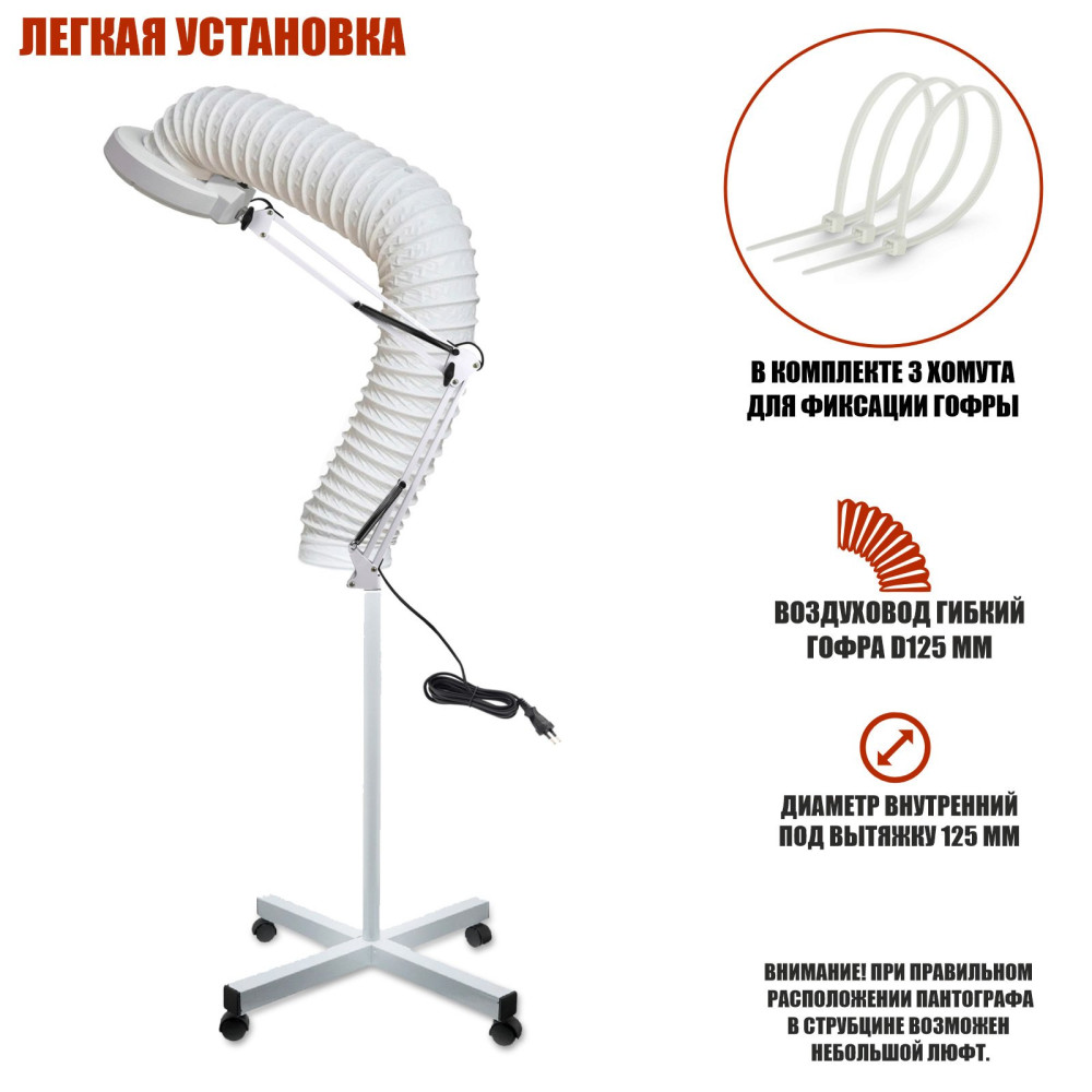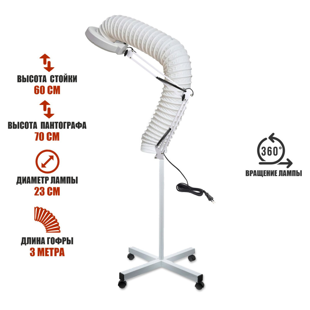 Лампа лупа LN-6-NS-01 с гофрой D125 мм 3 м под вытяжку для маникюра и педикюра на стойке на колесиках