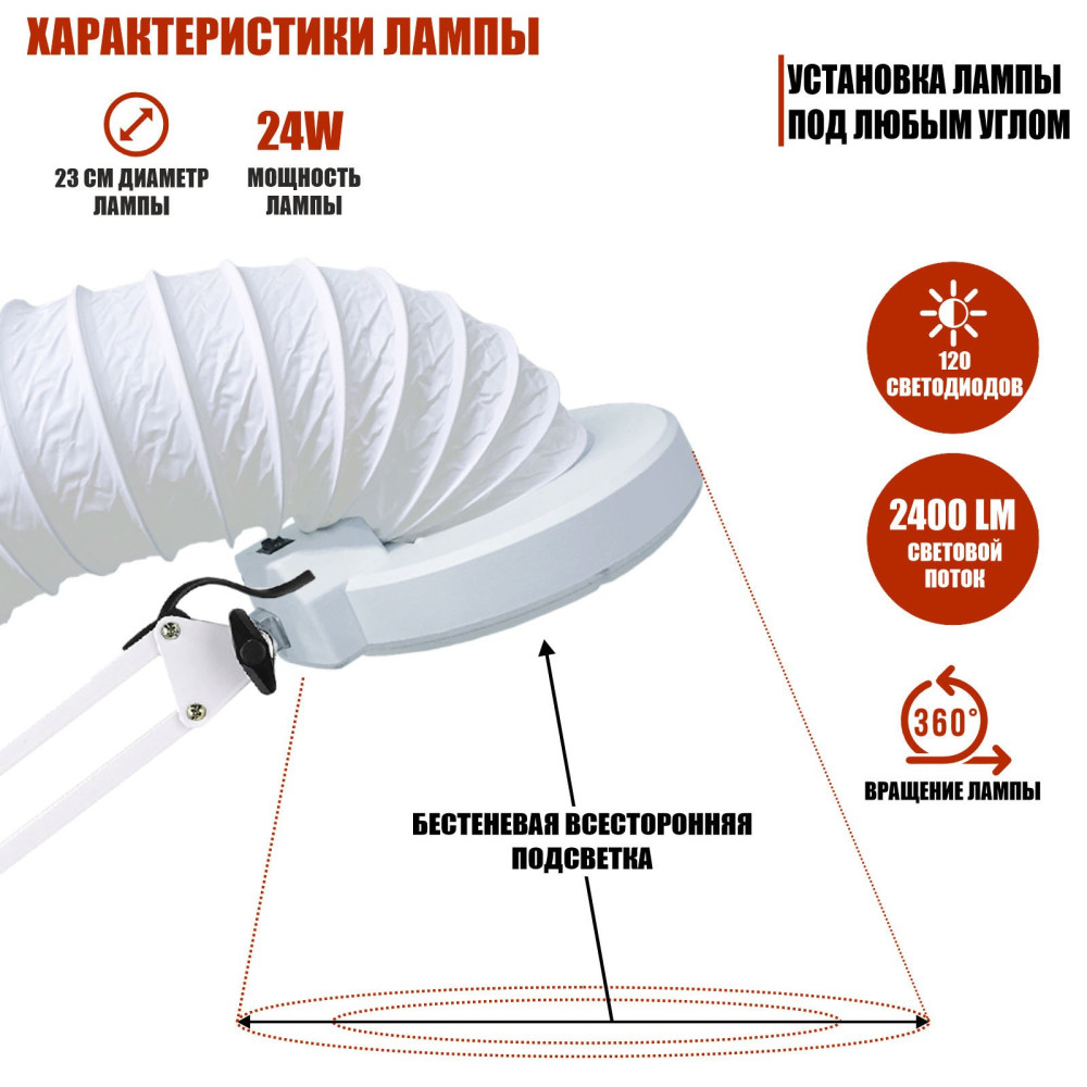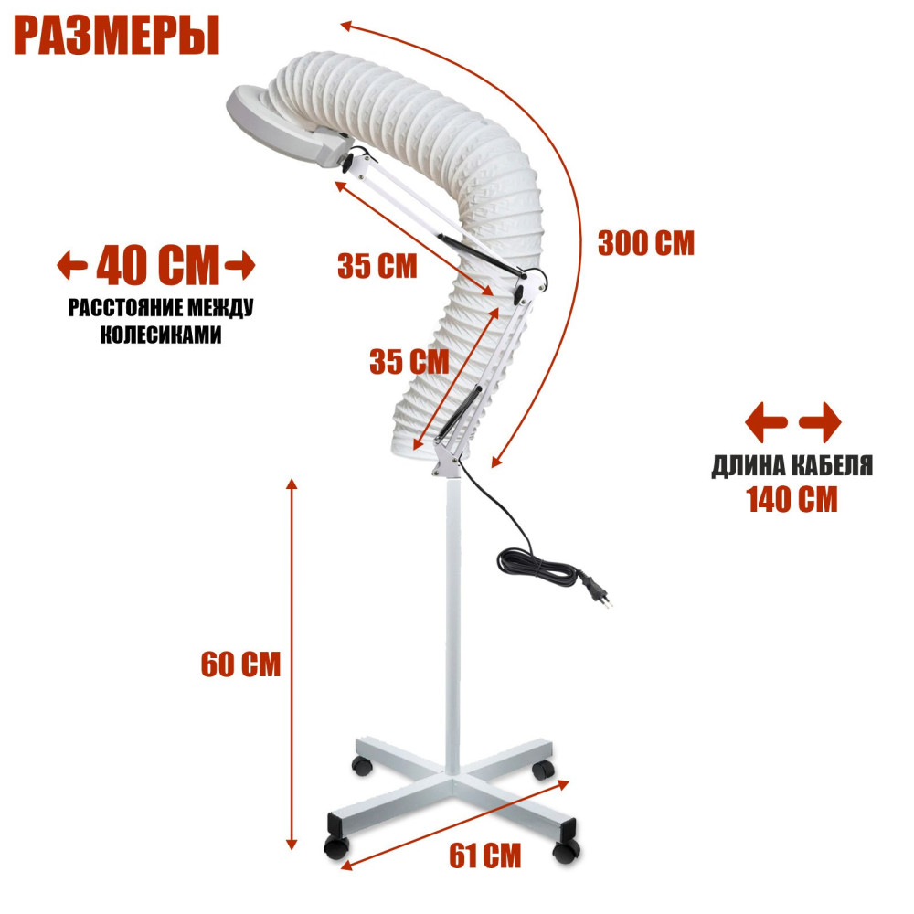 • Лампа лупа LN-6-NS-01 с гофрой D125 мм 3 м под вытяжку для маникюра и педикюра на стойке на колесиках