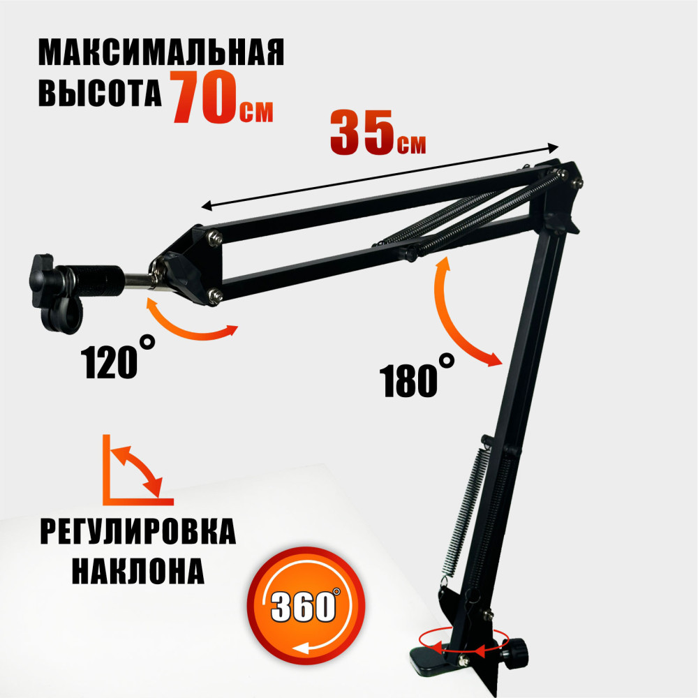 Крепление без упора для маникюрной лампы с ручкой на пантографе NBS, чёрное со струбцинным креплением