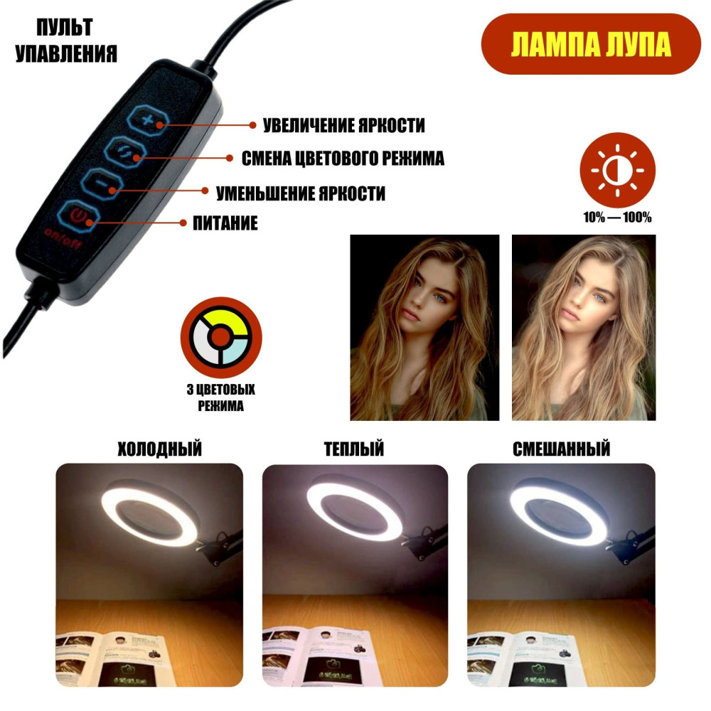Модель особенно востребована в косметологии, тату-индустрии, ювелирной сфере, при пайке и радиомонтажных работах, ремонте часов, в биологии и медицине. Лупа облегчает выполнение задач, требующих точности и контроля мелких деталей. Благодаря стабильному основанию лампа не смещается при работе и подходит для длительных сессий в студиях и мастерских. Плавная регулировка яркости помогает выбрать комфортное освещение под конкретную задачу. Конструкция устойчива, практична и рассчитана на ежедневное использование.