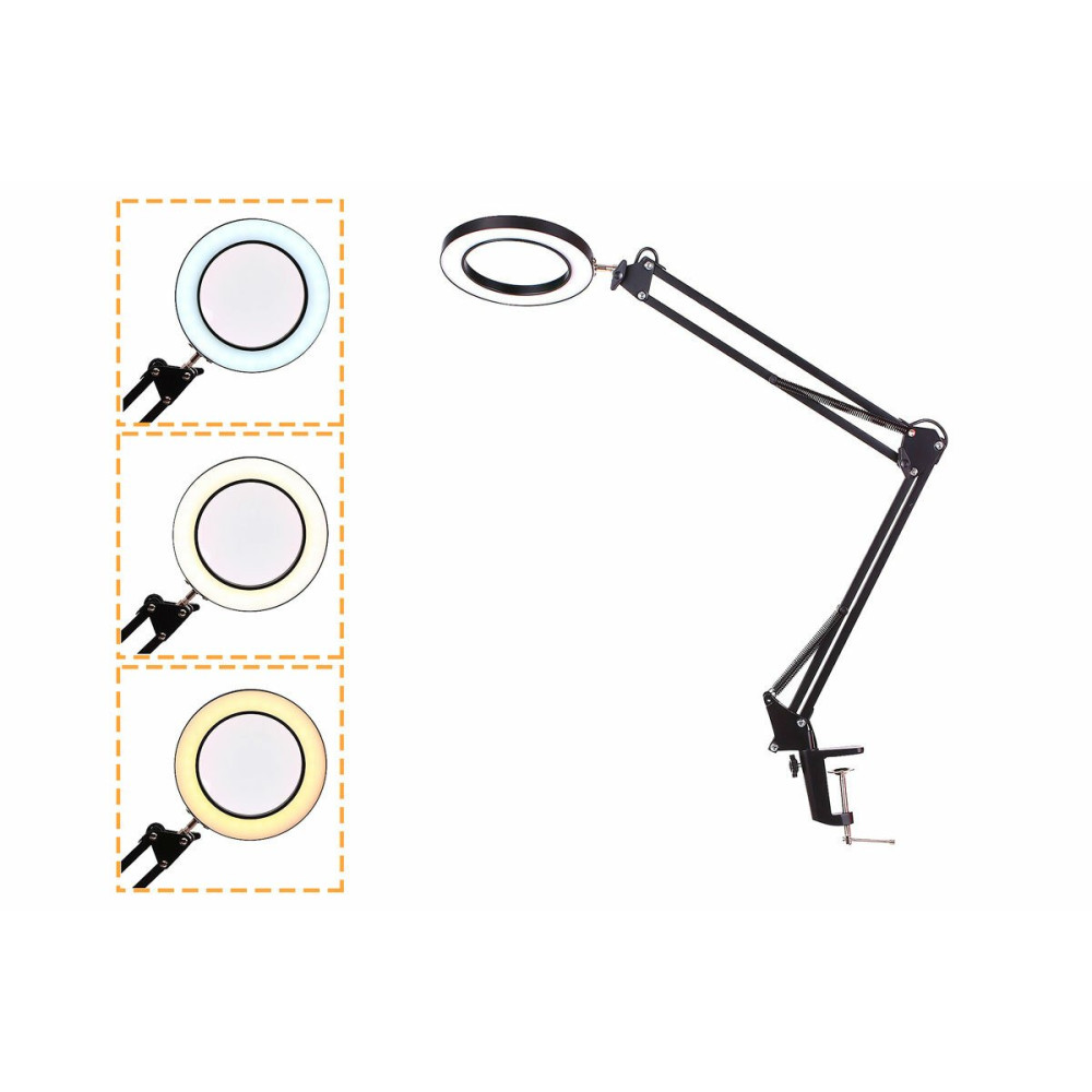 Настольная лампа-лупа LN-33 на усиленной струбцине предназначена для увеличения мелких предметов и работы с деталями. Линза из качественного стекла, бестеневая LED-подсветка и удобный пантограф позволяют точно регулировать положение лампы и обеспечивают комфортную работу. Три цветовых режима и регулировка яркости делают модель универсальной для косметологии, ювелирных и технических работ.