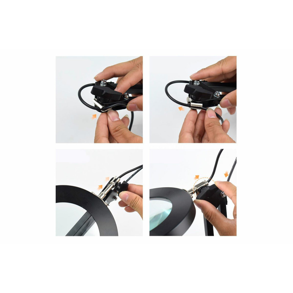 • Лампа лупа LED LN-33 чёрная на усиленной настольной струбцине и пантографе, с регулировкой яркости и 3 режимами света