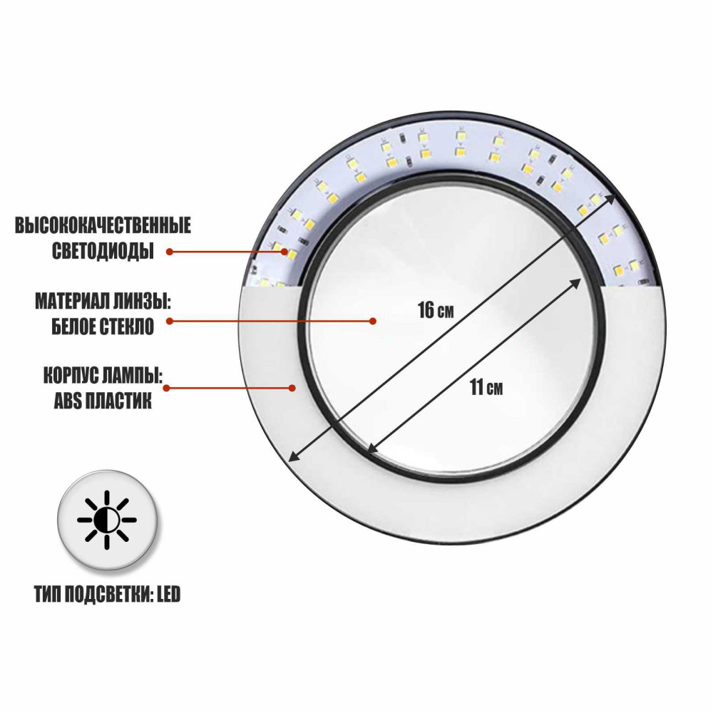 лампа лупа LN-33-PS65, настольная лампа лупа, лампа лупа LED, увеличительная лампа, лампа лупа на струбцине, лампа для косметологии, лампа для ювелиров, лампа для радиомонтажа, лампа с пантографом, бестеневая лампа, увеличительная лампа настольная