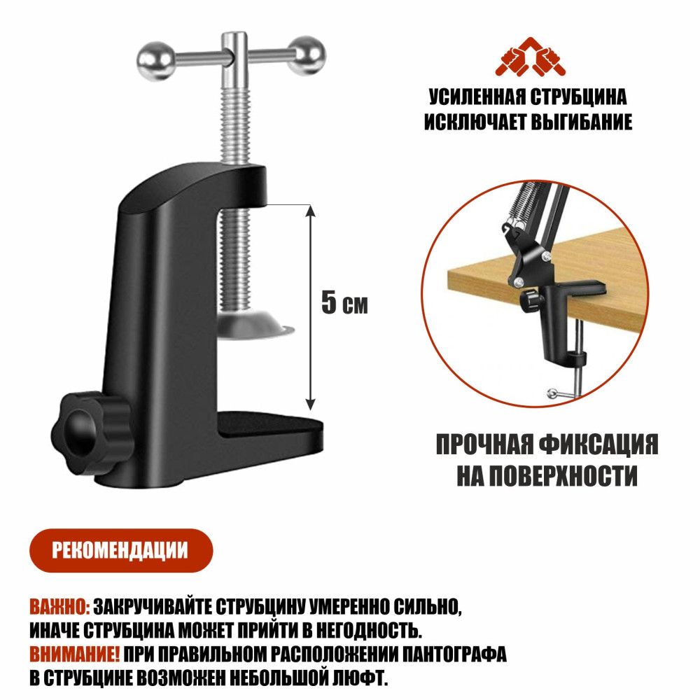 • Лампа лупа настольная LN-33 черная на пантографе с держателем телефона до 85 мм на зажиме и усиленной струбциной