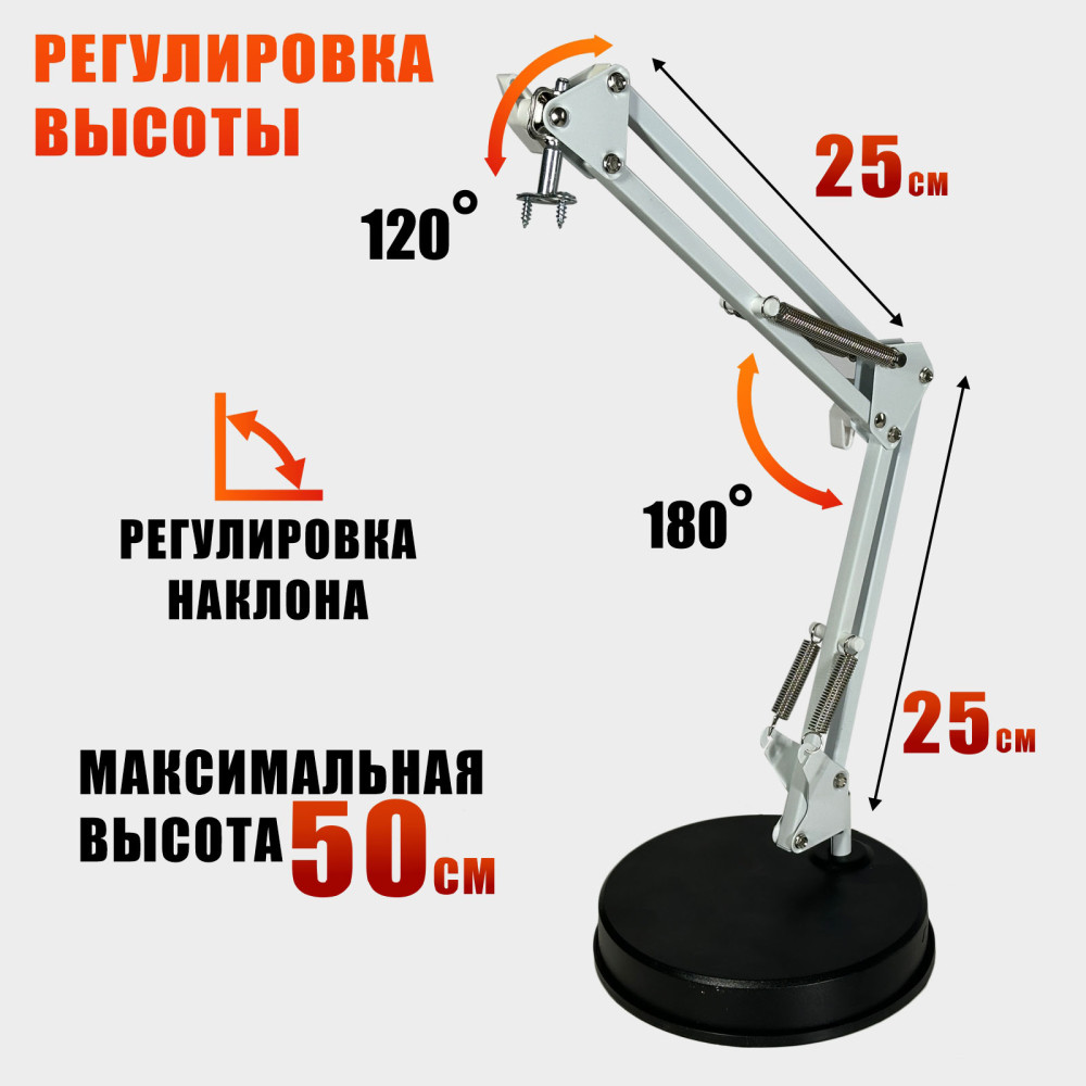 - Пантограф-кронштейн с регулировкой наклона и поворота лампы