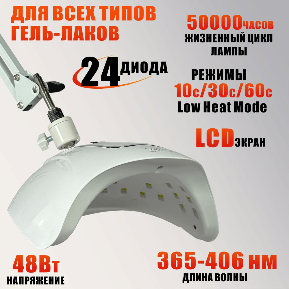 Лампа для сушки ногтей с пантографом и напольной стойкой обеспечивает удобство и точность при маникюре и педикюре. Устройство оснащено 24 ультрафиолетовыми светодиодами, LCD экраном и режимами 10/30/60 секунд с низкотемпературным отверждением. На нашем сайте Krasograd.ru доступны все комплектующие и запасные части для ремонта или обновления лампы, что продлевает срок её службы.