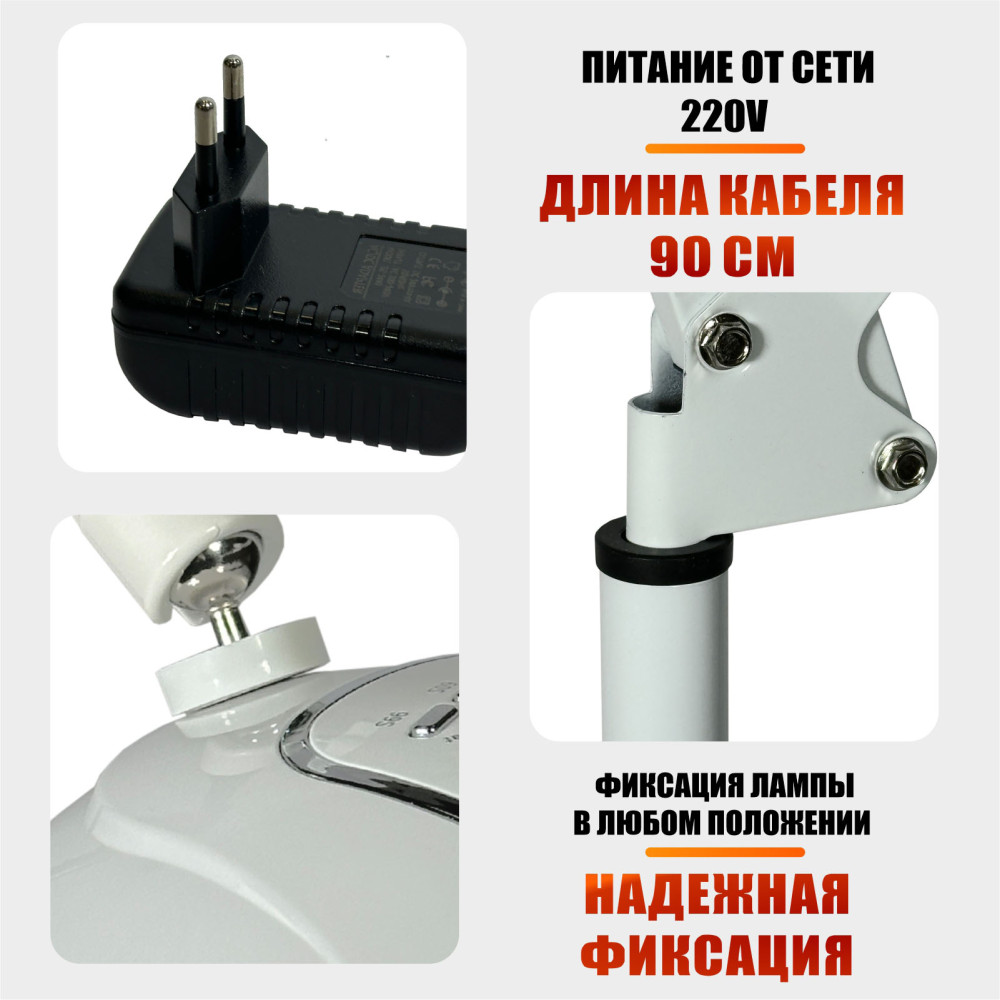 Лампа для сушки ногтей на пантографе с напольной стойкой — идеальное решение для профессиональных мастеров и домашнего использования. Пантограф позволяет точно настраивать положение лампы, а напольная стойка с регулируемой высотой обеспечивает комфортную работу для любых процедур. 24 УФ-светодиода с длиной волны 365–406 нм подходят для всех видов гель-лаков и гарантируют качественное полимеризование. LCD экран и выбор режимов 10, 30 и 60 секунд, а также режим низкотемпературного отверждения обеспечивают точное управление процессом и минимизируют дискомфорт для клиентов. Все комплектующие доступны на Krasograd.ru, что позволяет при необходимости быстро заменить износившиеся элементы и продлить срок службы лампы.