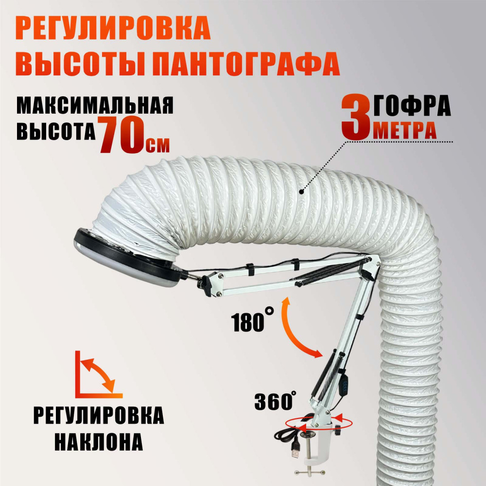 Лампа L156-GOF300 на настольном штативе с гофрой D125 мм и длиной 3 метра обеспечивает качественное освещение рабочего места и чистоту при маникюре, педикюре и косметологических процедурах. Усиленная струбцина надёжно закрепляет лампу на столе до 50 мм толщиной, а гофра подключается к маникюрному пылесосу для отвода пыли и запахов. LED подсветка с тремя режимами света и регулировкой яркости создаёт комфортные условия работы. Также в нашем магазине Krasograd.ru доступны аксессуары и комплектующие для лампы L156-GOF300.