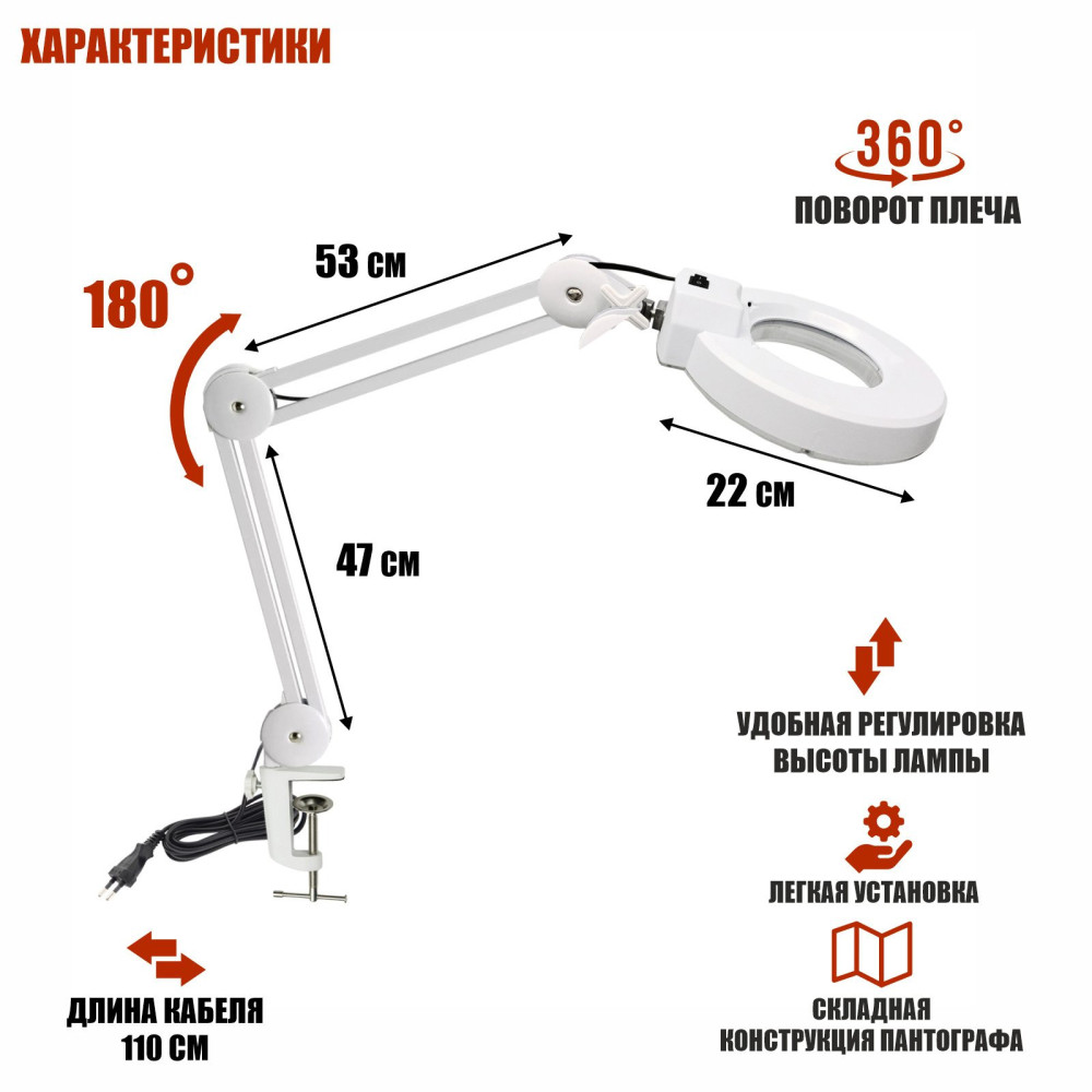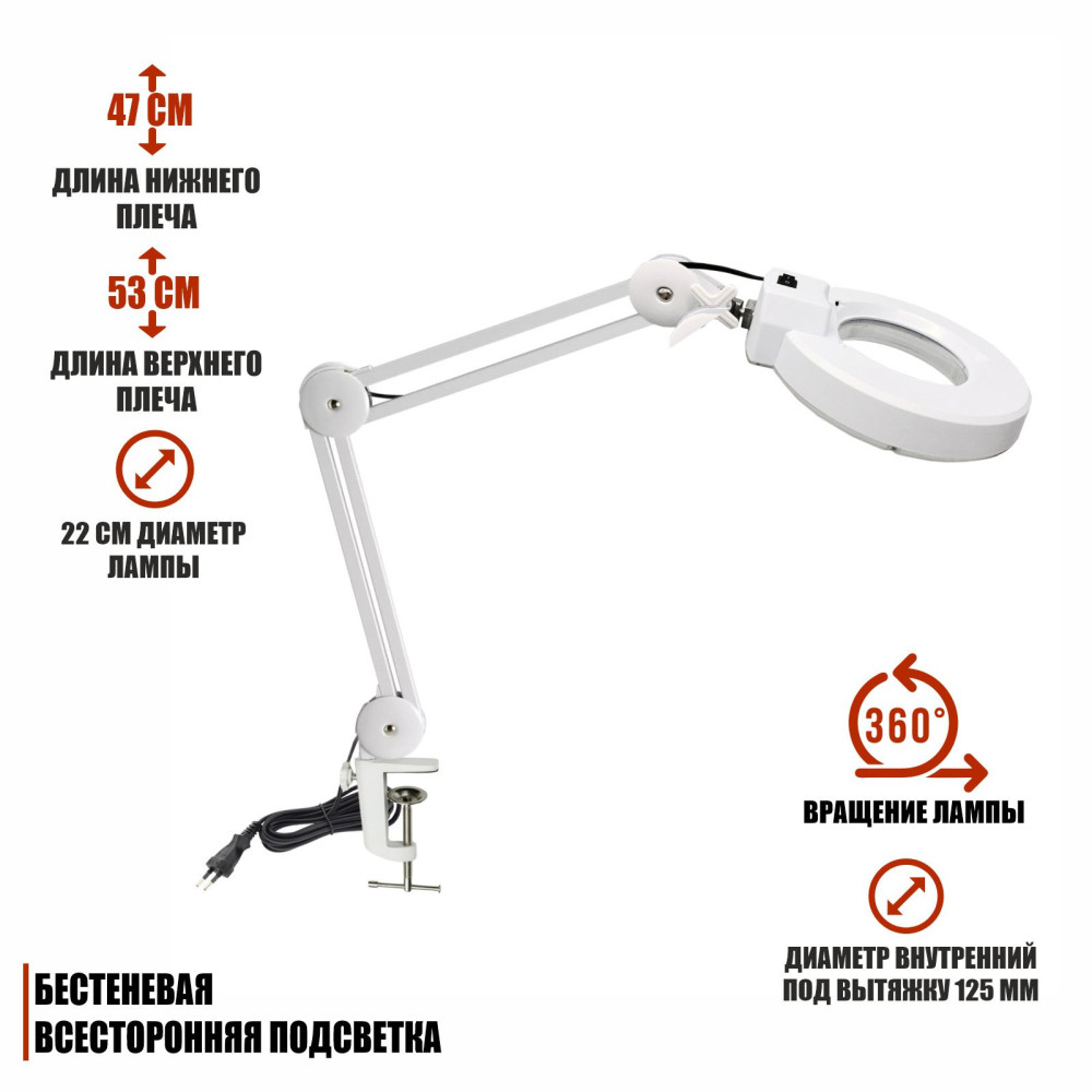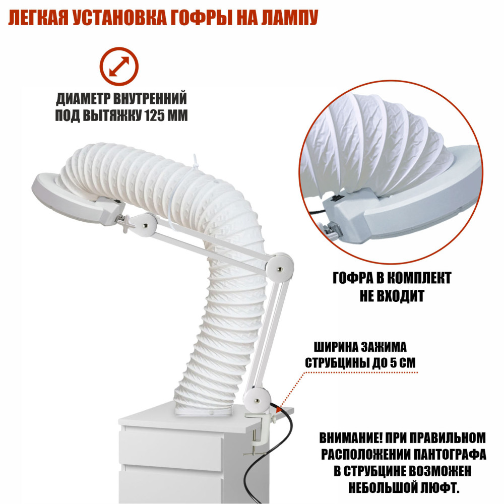 Лампа LN-5-GOF с отверстием для гофры D125 мм, под вытяжку для пылесоса, на настольном штативе, LED подсветка, для маникюра и педикюра