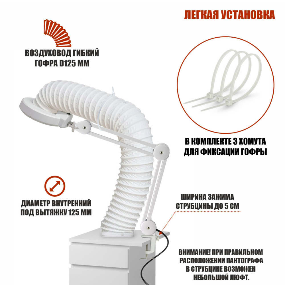 - Лампа на пантографе белая с креплением для воздуховодов D125 мм— 1 шт