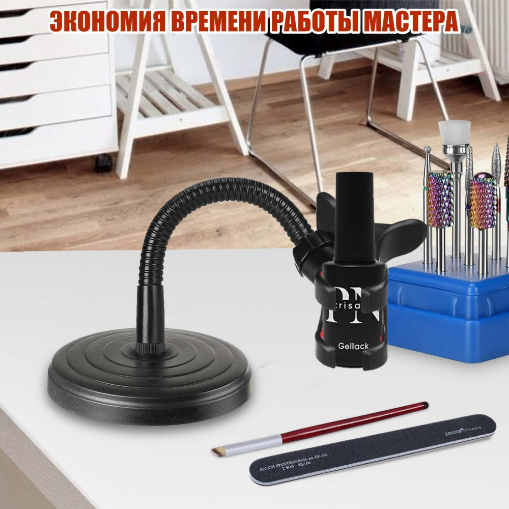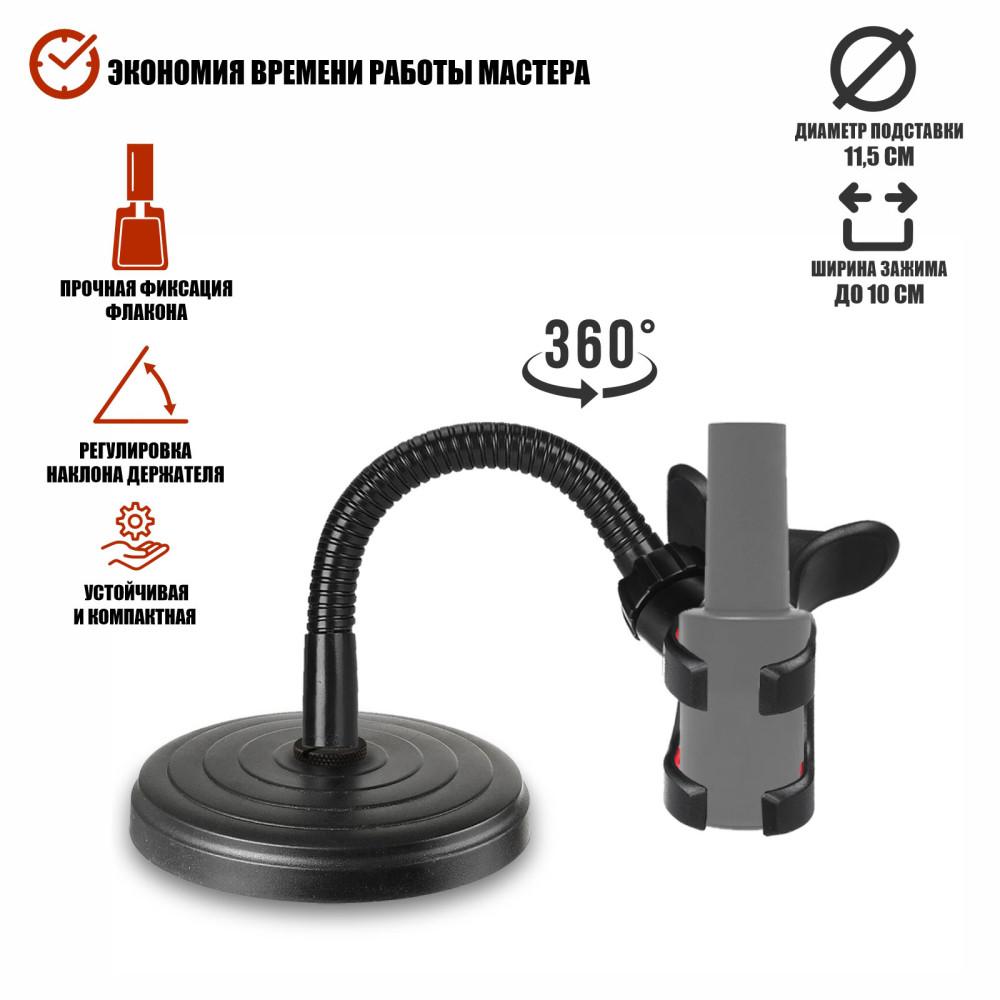 • Гибкая подставка ZM-02G10-LAK держатель для лаков, гель-лаков и шеллака, черная, с регулировкой наклона и универсальным креплением