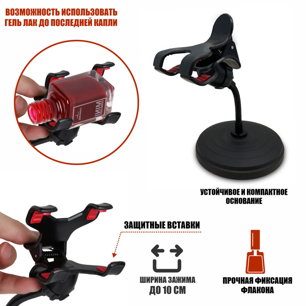 Гибкая подставка ZM-02G10-LAK держатель для лаков, гель-лаков и шеллака, черная, с регулировкой наклона и универсальным креплением